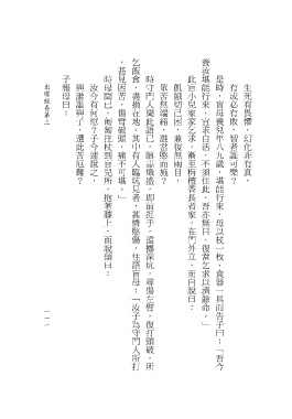 子報母曰: 時母聞已,匍匐拄杖到盲兒所,抱著膝上,而說頌曰: 時守門人聞此語已,瞋恚熾盛,即前捉手,遠擲深坑,尋傷左臂,復打頭破,所 此盲小兒家家乞求,漸至栴檀香長者家,在門外立,而自說曰: 是時,盲母養兒年八九歲,堪能行來,母以杖一枚、食器一具而告子曰:「吾今