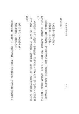 默也。 ,不以為歡,罵不報罵,行忍為業,若撾捶者,默受不報,是故說常欲勝者,於言宜 也。 積罪如山,同類歎譽,各諍勝如,此名穢濁,不至究竟,是故說若愚勝智,麤言惡說 ,觀法亦然。