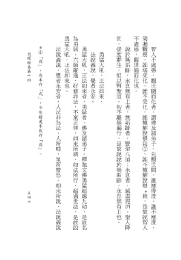 * 法說義說,覺者永安者,人法非為法,人所嗤,眾所憎惡。如來所說,法說義說 勇猛大吼,正法如來者,勇猛者,佛及諸弟子。釋迦文佛勇猛超越九劫,是故名 說於無垢跡,永息無有上者,無垢跡者,賢聖八道;永息者,滅盡泥洹。聖人降 智人不處愚,觀世隨而化者,謂佛及諸弟子,先觀世間,誰應得度、誰不應度,