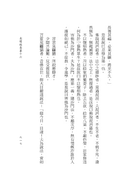 言當莫麤獷者,昔佛在世,與大目揵連說法:「卿今日,目連!夫為說法,當如 害他為沙門者,夫為沙門,應第一義,隨沙門法,不越次序,無有憎嫉詐誑於人 不以懷煩熱者,所以捨家捐棄妻子,除去五欲,捨世八業,不顧俗榮,出家修道 佛說泥洹最者,法中之微妙者,莫過泥洹。夫泥洹者,不生不老,不病不死,澹 是故說曰忍辱為第一也。