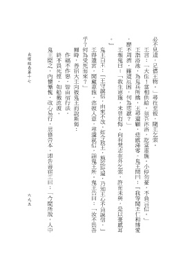 鬼王聞之,內懷慚愧,改心易行,思修善本,即告善宿王曰:「今聞所說,人中 爾時,善宿大王向彼鬼王而說斯偈: 王得還宮,開藏惠施,恣彼人意,尋還就信,詣鬼王所。鬼王告曰:「汝不畏吾 鬼王白王:「王守誠信,由來不改。如今放王,施訖時還,乃知王心不負誠信。」 王報鬼曰:「我生惠施,未曾有悔。向有梵志在外乞索,許而未與,是以憂慼耳 王詣浴池,為鬼兵所擒,王尋還顧,悲慼涕零。鬼王問曰:「我等聞王仁和博愛 王言:「大佳!當相供給。須吾沐浴,訖當惠施。小停勿憂,不負言信。」