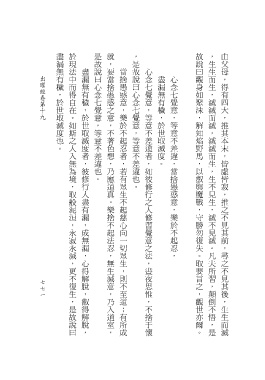 盡漏無有穢,於世取滅度也。 於現法中而得自在。如斯之人入無為境,取般泥洹,永寂永滅,更不復生,是故說曰 是故說曰心念七覺意,等意不差違也。 就,要當捨愚惑之意,不著色想,乃應道真。樂捨不起法忍,無生滅意,乃入道室, ,是故說曰心念七覺意,等意不差違也。 故說曰觀身如聚沫,解知焰野馬,以叡與魔戰,守勝勿復失。取要言之,觀世亦爾。 ,生生而生,滅滅而滅,滅滅而生,生不見生,滅不見滅。凡夫所習,顛倒不悟,是 由父母,得有四大,推其本末,皆虛皆寂,推之不見其前,尋之不見其後,生生而滅