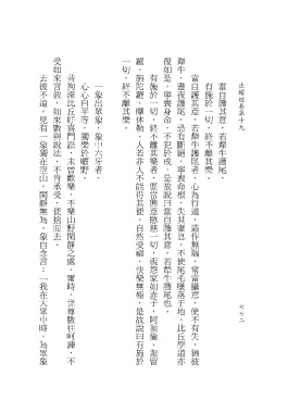 心心自平等,獨樂於曠野。 一象出眾象,象中六牙者, 有施於一切,終不離其樂。 當自護其意,若犛牛護尾, 出曜經卷第十九
