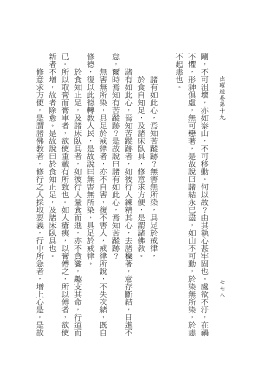 修意求方便,是謂諸佛教者,修行之人採取要義,行中所急者,增上心是,是故 於食知止足,及諸床臥具者,如彼行人量食而進,亦不貪餮,趣支其命,行道而 無害無所染,具足於戒律者,亦不自害,復不害人,戒律所說,不失次緒,既自 諸有如此心,焉知苦蹤跡者,如彼行人練精其心,去諸穢著,意存斷結,日進不