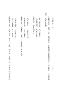 病死,更不復受有。 以勝叢林刺者,此名為色、聲、香、味、細滑法,更復有者。何者為林刺?所謂 永離於魔界,更不處於欲界,以脫永脫,更不受有。 以度生死,更不受有。 所謂結使者,眾行之本,漏諸穢濁,是故說曰無有結使心,比丘攝意行,以盡老 猶如憑泰山,比丘不受苦。 以勝叢林刺,及除罵詈者, 更不復受有,以脫於魔界。 比丘攝意行,以盡老病死, 以盡老病死,更不復受有。 不以斷有根,比丘攝意行, 出曜經卷第十九 7 9 9 8 8