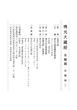 舒建中 傳真:八八六 電話:八八六 佛光山文化發行部 電話:八八六 高雄市大樹區興田里興田路一五三號 佛光出版社 慈惠法師(張優理) 佛光山宗務委員會 有版權 二 佛光大藏經編修委員會 星雲大師
