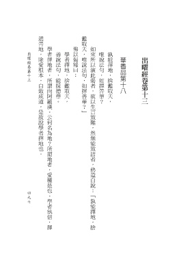 選善地,除愛根本,自致成道,是故說學者擇地也。 鑑取天,唯說法句,如擇善華?」 學者擇地者,所謂向阿羅漢。云何名為地?所謂地者,愛種是也。學者執信,擇 佛以偈報曰: 如來所以演此偈者,欲以生言致難,然無能致詰者,佛還自說:「孰能擇地,捨 出曜經卷第十三 善說法句,能採德華。 學者擇地,捨鑑取天, 唯說法句,如擇善華? 孰能擇地,捨鑑取天, 華香品第十八 出曜經卷第十三 4 9 9 7 7