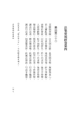 法集要頌經卷第四 護法行法者,如蓋覆其形,此應法律教,行法不趣惡。 護法行法者,修法獲善報,此應法律教,行法不趣惡。 樂法樂學行,慎莫行惡法,能善行法者,今世後世樂。 人欲得歡樂,杖不加群生,於中自求樂,後世亦得樂。 善樂於愛欲,以杖加群生,於中自求安,後世不得樂。 若人擾亂彼,自求安樂世,遂成其怨憎,終不得解脫。 忍勝則怨賊,自負則自鄙,息意則快樂,無勝無負心。 ① 底本無「樂品第三十」,今依據清藏本補上。 樂品第三十 法集要頌經卷第四 ① 2 4 4 7 7